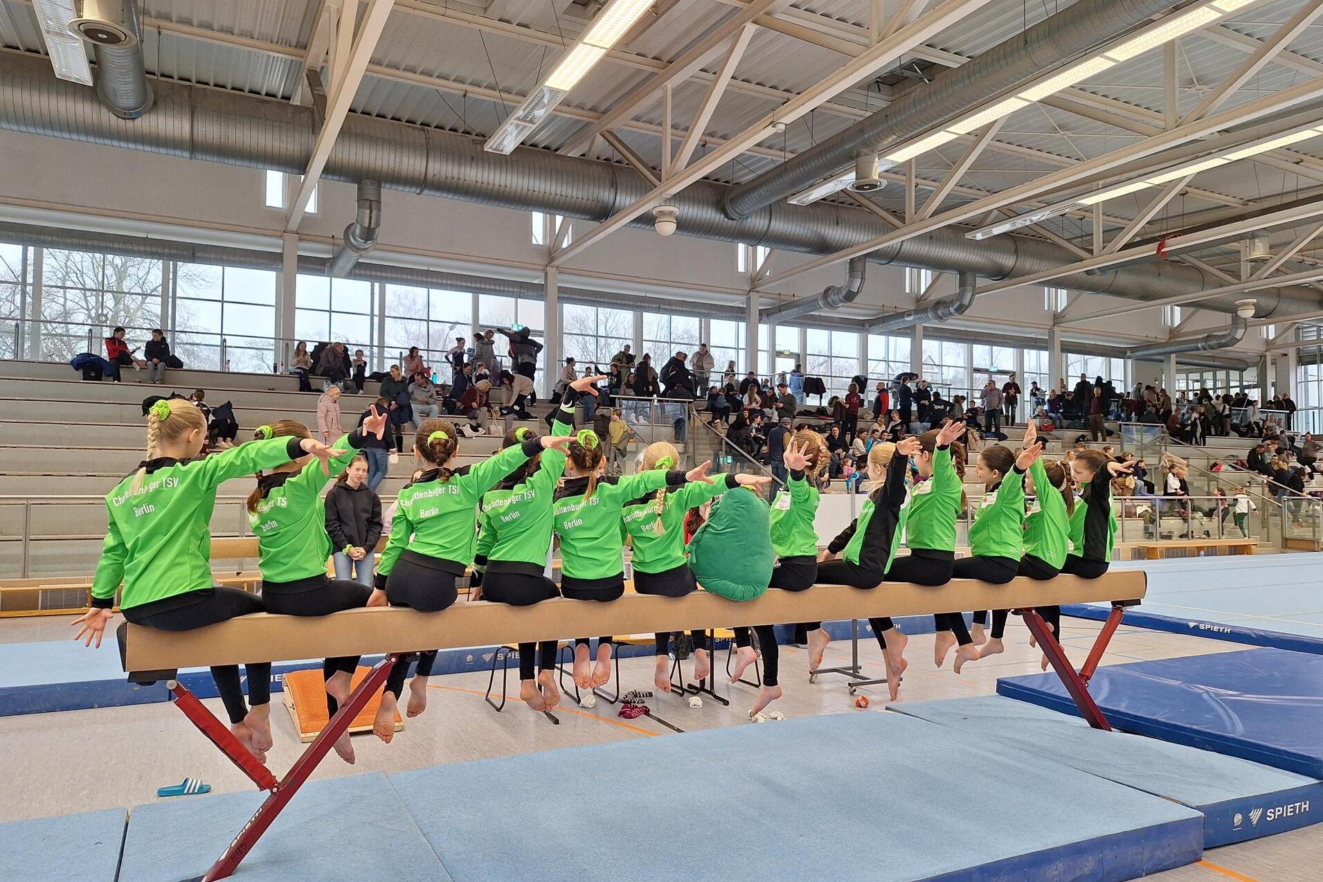 Die Aufregung war bei allen groß – besonders bei unserer zweiten Mannschaft, für die es der allererste Wettkampf war. Gestartet wurde am Boden, anschließend ging es zum Sprung, weiter an den Barren und zum Abschluss an das Zittergerät Balken.